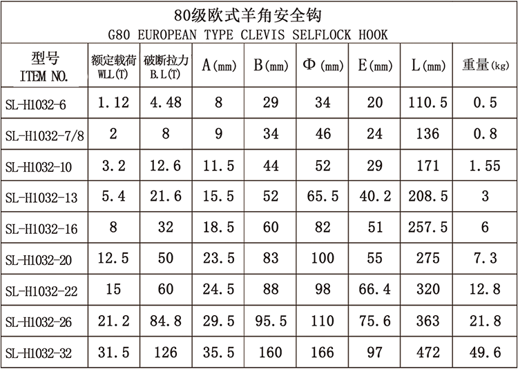 80级欧式羊角安全钩
